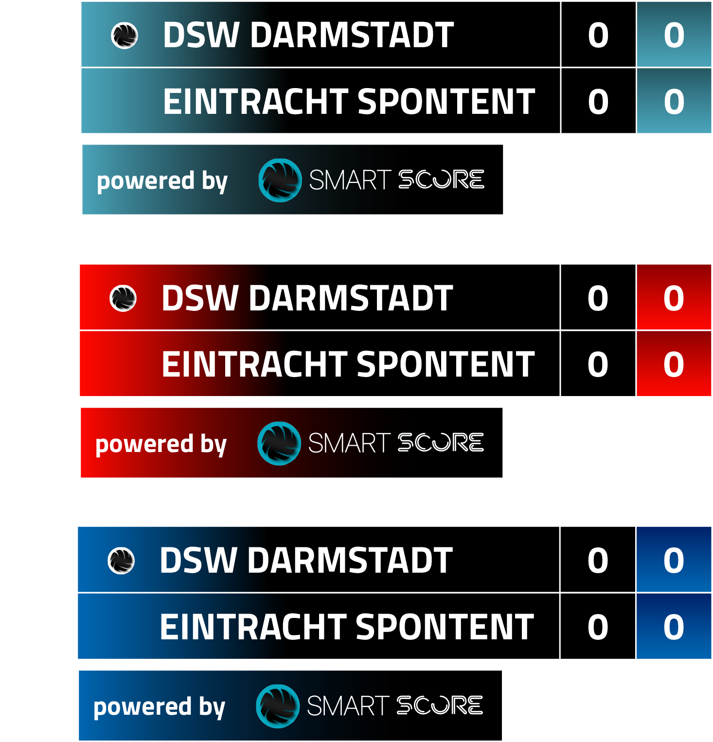 Wähle aus drei Designs aus, um den Score perfekt an deine Mannschaft anzupassen.